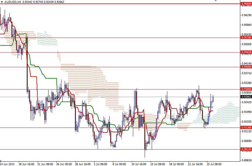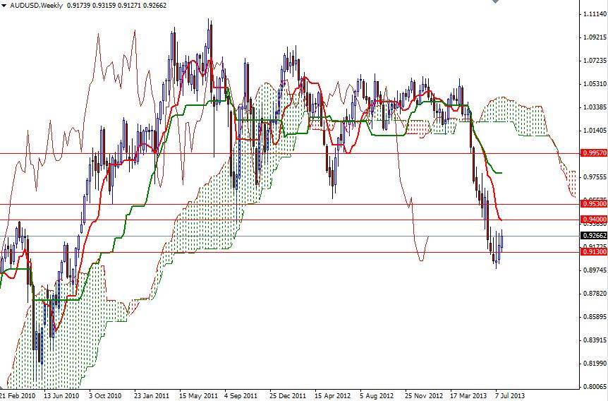 Günlük ve haftalık grafiklerde fiyatların Ichimoku bulutu altında olması yaşanacak olası yükselişlerin bir düzeltme olarak nitelendirilmesine neden olmaktadır. Bu sebepten dolayı –şu anda elimizde bulunan verilere göre- uzun vadede akımın yönü aşağısı olacaktır. Diğer bir deyişle, kısa vadede boğaların lehine olan bu düzeltme daha uzun süreli işlem yapanlar için satış fırsatlarının doğmasına yardımcı olacaktır. Avustralya Merkez Bankasının para birimini daha düşük seviyelerde görmek istemesi, Amerika Merkez Bankasının ise niceliksel gevşemeyi Eylül ayında yapacağı toplantı ertesinde frenlemeye başlayacağı beklentileri bu paritenin hareketini etkileyecektir. Avustralya’nın ihraç ettiği hammaddelerin en büyük alıcısı olan Çin’in ekonomisinde meydana gelen değişiklikler de AUD/USD paritesi için kritik bir önem taşımaktadır. Eğer ayılar (satıcılar) piyasada dizginleri ellerine geçirirler ve fiyatları 0.9130 desteğinin altına indirebilirlerse, 0.9033 seviyesi bir kez daha test edilecektir. Aynı zamanda psikolojik bir nokta olan 0.9000 altında gerçekleşecek bir kapanış ise bu pariteyi hızlıca 0.8850 seviyesine çekebilir.