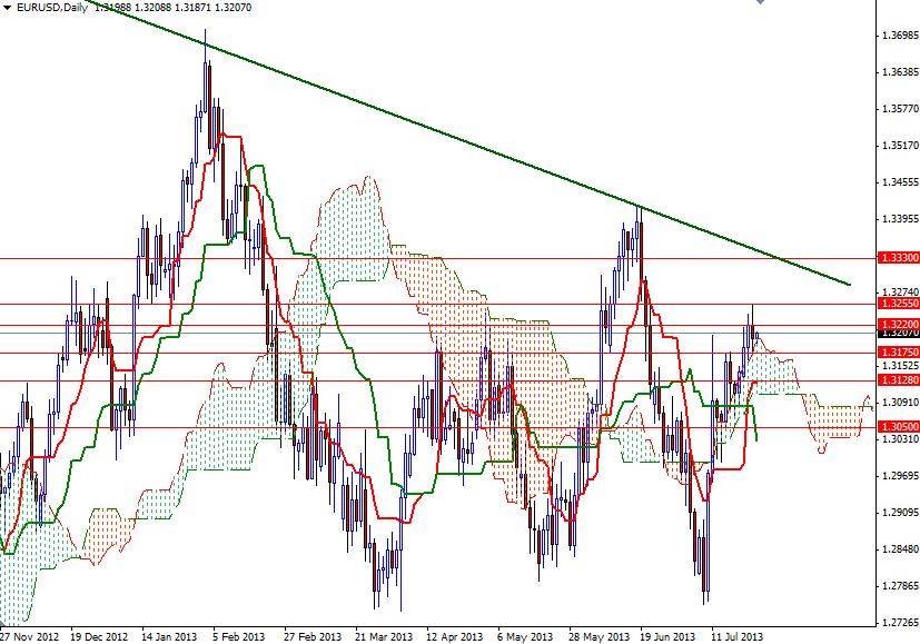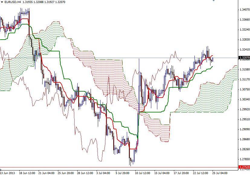 Günlük ve 4-saatlik grafiklerde EUR/USD paritesinin Ichimoku bulutunun (dikey çizgilerin oluşturduğu alan) üzerinde hareket etmesi olumludur. Öte yandan, paritenin yükselmeyi sürdürmek için geçmesi gereken ciddi bir engel bulunmaktadır. Günlük grafikte 1.3220 ve 1.3255 arasında bulunan bölgenin paritenin Nisan ve Mayıs aylarında önünü kestiği görülmektedir. Eğer parite bu engeli aşabilirse, alçalan akım çizgisinin bulunduğu 1.3330 seviyesine doğru yönelecektir. Alçalan akım çizgisinin kırılması fiyatların 1.34 seviyesine olan seyahatini hızlandıracaktır. Aşağı yöne bakıldığında ilk desteğin 1.3175 seviyesinde bulunduğunu görmekteyiz. Daha aşağıda bulunan 1.3128 – 1.3105 desteğinin kırılması ise paritenin yeniden 1.3050 seviyesini ziyaret etmesine neden olabilir.