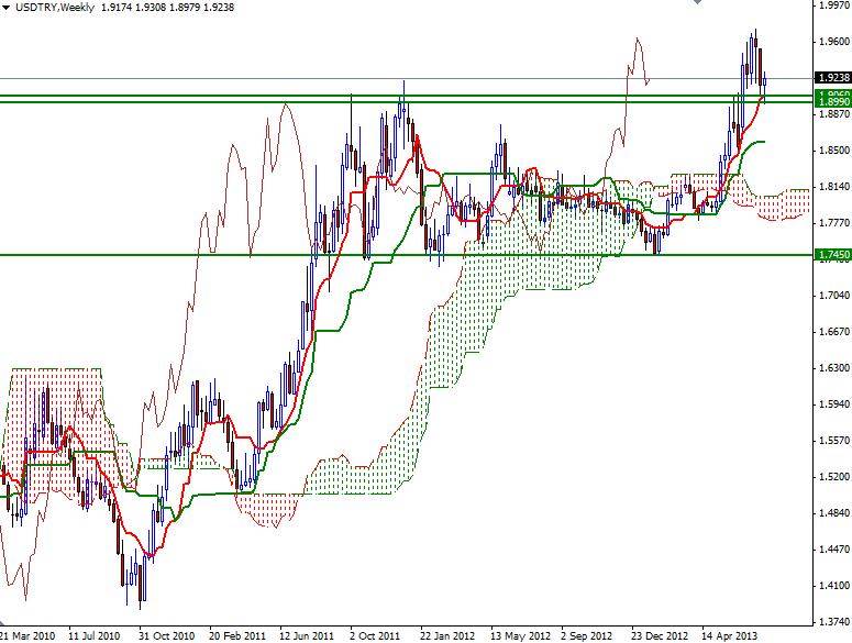 1.9060 desteğinin kırılması ertesinde USD/TRY paritesinin kritik bir destek olduğunu defalarca belirttiğim 1.8990 seviyesine kadar gerilediğini ve buradan yönünü yeniden yukarı çevirdiğini görmekteyiz. Günlük ve haftalık grafiklerde akımın halen kuzey olması satıcıların dikkatli olmasını gerektirmektedir. Fiyatların 4-saatlik grafikte Ichimoku bulutunun (dikey çizgilerin oluşturduğu alan) içerisine girmesi kısa vadedeki yön arayışını dile getirmektedir.