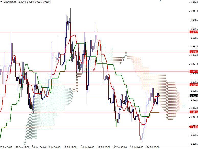 Önümüzdeki haftanın büyük merkez bankalarının para politikalarına yön yerecekleri toplantılarının yapılacağı hafta olduğunu düşünecek olursak piyasa oyuncularının büyük pozisyonlar açmaktan uzak durmayı tercih edeceklerini söylemek mümkün olacaktır. 30-31 Temmuz tarihlerinde yapılacak olan Amerika Merkez Bankası toplantısı hiç şüphesiz ki piyasanın hareketini derinden etkileyecektir. Fed’in nasıl ve ne zaman niceliksel gevşemeyi azaltacağı konusu piyasanın odak noktası haline gelmiştir ve yatırımcılar Fed adım atana dek spekülasyon yapmaya devam edecektir. Eğer Fed tahvil alımlarında frene basmak konusunda tereddütte olduğunu yineler ve varlık alımlarına tam gaz devam etme kararı alırsa, piyasa genelinde dolar satışı hız kazanacaktır. Bu yüzden, 1.9146 desteğinin gün içi perspektifinden işlemler yapanlar için önemli olacağını düşünmekteyim. Bu desteğin günlük bazda kırılması durumunda 1.9060 ve 1.8990 destekleri bir kez daha test edilebilir. 1.8990 desteğinin ihlali neticesinde ise 1.8865 - 1.8700 bölgesine giden kapı açılmış olacaktır. Eğer Birleşik Devletlerden gelecek haberler Amerikan doları lehine bir ortam yaratır ve USD/TRY paritesi tırmanmaya devam ederse, 1.9300 – 1.9375 direnç bölgesinin nasıl bir tepki ortaya çıkaracağını izlemek gerekecektir. Bu direnç bölgesinin boğalar (alıcılar) tarafından ele geçirilmesi piyasaya yeni alıcılar getireceğinden yükseliş ivme kazanabilir. Eğer bu senaryo gerçekleşirse 1.9485 ve 1.5997 dirençlerine doğru bir tırmanış tetiklenebilir.