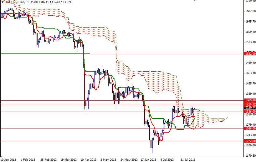Piyasada oluşan gelişmelerin yatırımcıları altının güvenli limanına sürüklemesi XAU/USD çiftinin dünkü seansı yükselişle tamamlamasına yardımcı olmuştur. ABD’den dün açıklanan rapor üretici fiyatlarının Temmuz ayı içerisinde sabit kaldığını işaret etmektedir. Değerli madene olan talep St. Louis Fed Başkanı James Bullard’ın niceliksel gevşeme konusunda yaptığı açıklamalardan da etkilenmiş görünmektedir. Bullar dün yaptığı açıklamada “Komitenin bu konuda bir karara varabilmesi için 2013 yılının ikinci yarısındaki makroekonomik performans hakkında daha çok bilgiye sahibi olması gerekmektedir” demiştir. Bullard, istihdam sektörünün -Amerika Merkez Bankasının varlık alımları programını düzenlediği- 2012 yılının Eylül ayından bu yana gelişme kaydettiğini fakat işgücü katılım oranının halen zayıf bir düzeyde olduğunu da belirtmiştir. Fed’in niceliksel gevşemeyi azaltma yoluna gideceğine inansam da şu aşamada altın üzerinde satış işlemi yapmak için geçerli teknik bir neden görmemekteyim.