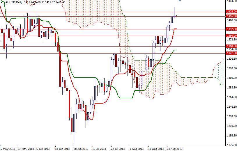 XAU/USD - Altın Günlük Grafik – 29 Ağustos 2013