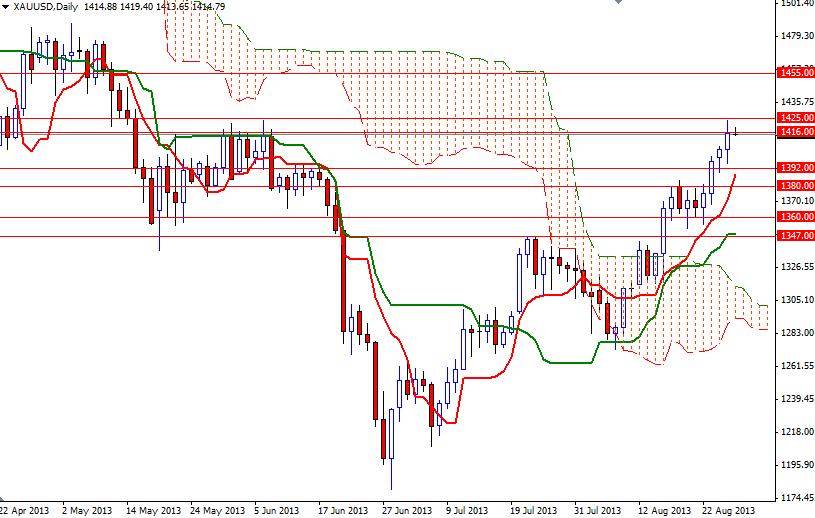 Birkaç gün önce ABD Hazine Bakanı Jack Lew, ülkenin Ekim ayı ortasında bütçe tavanına ulaşacağı konusunda uyarıda bulunmuştu. Bu konu daha önce izlediğimiz sahnenin bir tekrarı olacaktır. Cumhuriyetçiler bütçe tavanı kozunu kullanarak Başkan Obama’yı harcama kesintilerini artırmaya zorlayacaklardır. Altın fiyatlarını destekleyen diğer bir unsur ise ABD Savunma Bakanı Chuck Hagel’in Suriye konusundaki yorumları olmaktadır. Hagel, Birleşik Devletlerin (bölgede bulunan askeri gücün) kimyasal silah kullanan Suriye’ye müdahaleye hazır olduğunu dile getirmiştir. Kısa vadede, Suriye’ye düzenlenecek bir saldırı olasılığı ve bütçe tavanı muamması altın fiyatlarını destekleyici bir rol üstlenebilir.
