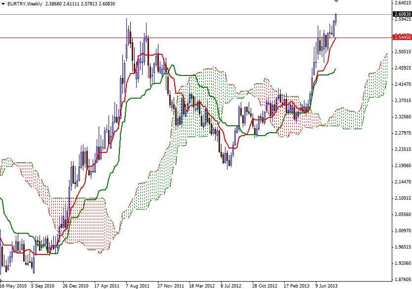 Almanya Merkez Bankası Bundesbank tarafından dün yayınlanan bir raporda “Daha yüksek bir enflasyon baskısı oluşursa Avrupa Merkez Bankasının faiz oranlarında artışa gitmesi ihtimal dışı değildir” ifadesini kullanması ile güçlenen EUR/TRY paritesi 2011 yılında ulaşılan rekor seviyenin de ötesine geçilmesine neden olmuştur. Parite bugünün Asya seansında 2.6083 seviyesinden işlem görmektedir. Geçen hafta yapmış olduğum analizde 2.5720 direnç seviyesinin öneminden ve geçilmesi durumunda 2.5981 seviyesinin test edileceğini dile getirmiştim. Bu noktada, yükselişin benim beklediğimden de hızlı olduğunu belirtmeden geçemeyeceğim. Tabi, Avrupa’dan gelen ekonomik verilerin de ortak para biriminin desteklenmesinde büyük payı olduğunu unutmamamız gereklidir. Neticede piyasalar son dönemler içerisinde ekonomik verilere daha çok önem verir hale gelmiştir ve Euro Bölgesinin resesyondan çıkması tüm piyasalar açısından önemli bir gelişmedir. Türk lirasına olan güvensizliğin paritenin hareketi açısından büyük önem taşıdığını daha önceki yazılarım da önemle vurgulamıştım. Kısacası, temel faktörlerin teknik faktörlerle desteklenmesi şu anda bulunduğumuz noktaya gelmemize sebep olmuştur.
