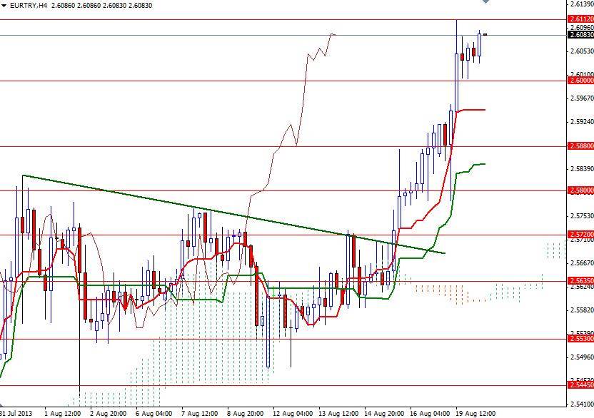 Günlük, haftalık ve 4-saatlik grafiklerde paritenin Ichimoku bulutları (dikey çizgilerin oluşturduğu alan) üzerinde olması satıcıların zayıf bir durumda olduğunu ifade etmektedir. Bu durum değişmediği sürece satış işlemleri riskli olmaya devam edecektir. Öte yandan, piyasanın düz bir çizgi halinde ilerlemediği de unutulmamalıdır. Akımın yukarı yönlü olması geri çekilmelerin yaşanmayacağı anlamına gelmemektedir. Bunun anlamı akımın tersinde yapılacak işlemlerin daha kısa vadeli olmasının yerinde bir tercih olacağıdır. Bugün için izlenmesi gereken seviyeler 2.6112 ve 2.6000 olacaktır. 2.6112 seviyesinin başarılı bir şekilde geçilmesi halinde 2.6160, 2.6230 gündeme gelecektir. 2.6230 bariyerinin kırılması durumunda ise fiyatların (haftalık grafik) Bollinger bandının üst çizgisi olan 2.6400 seviyesine doğru ilerlemesi teknik olarak mümkündür. Eğer satıcılar piyasanın hâkimiyetini ellerine geçirirler ve pariteyi 2.6000 desteği altına kaydırabilirlerse, 2.5946 2.5880 ve 2.5800 desteklerinin test edilmesi olasılığı artacaktır.
