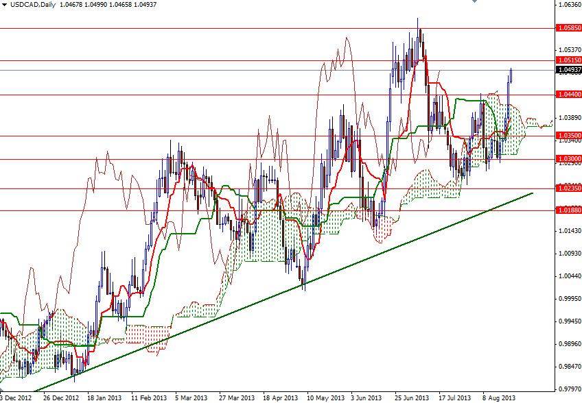 USD/CAD paritesi 1.0300 – 1.0350 seviyeleri arasındaki konsolidasyonunu Salı günü yaptığı yukarı hamle neticesinde tamamlamıştır. Dün Birleşik Devletlerden gelen manşetlerin hızlandırdığı tırmanış hareketi, USD/CAD paritesinin 1.0440 direncini de geçerek 1.0494 seviyesine kadar ulaşmasını sağlamıştır.