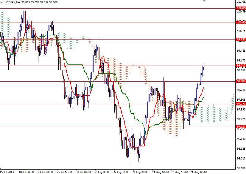 97 seviyesini başarı ile koruyan USD/JPY paritesi bugün ciddi bir sınav vereceği 99.01 direncine gelmiş bulunmaktadır. Bu seviyede alçalan akım çizgisinin bulunması haftanın son işlem gününde nasıl bir fiyat hareketi yaşanacağına olan ilgiyi artırmaktadır. Analizlerimi takip eden yatırımcıların bildiği üzere, Ichimoku bulutları (dikey çizgilerin oluşturduğu alan) konumlarına göre direnç veya destek bölgelerini temsil etmektedir.