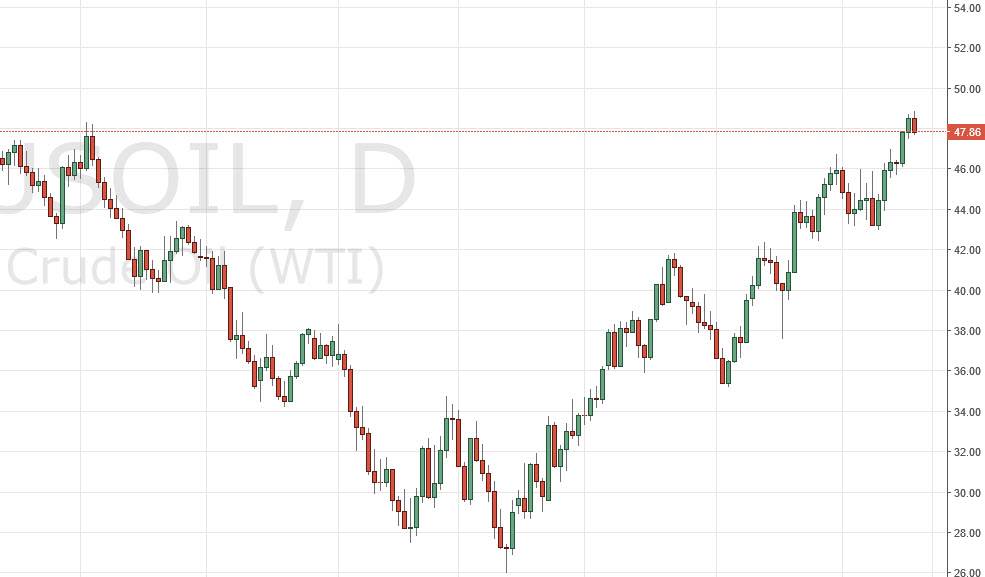 Batı Teksas türü ham petrol (WTI), Çarşamba gününde düşüş sergilemiş ve Salı günü kazandığı toprakların bir bölümünü geri vermiştir. Her şeye rağmen, bu bir patinaj olarak değerlendirilebilir zira halen yükseliş baskısı mevcuttur. Şu aşamada piyasanın 50 USD seviyesine erişmekte kararlı olduğunu düşünüyorum. Bu koşullar altında kısa vadeli yatırımcılar fırsatları değerlendirmeye devam edecektir. Bu noktasa herkesin, satıcılar da dahil olmak üzere, 50 USD seviyesini beklemeye niyetli olduğunu tahmin ediyorum.
