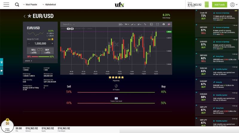 UFX emtialar, hisse senetleri, endeksler, CFDler gibi pek çok yatırım aracı üzerinde işlem gerçekleştirme fırsatı tanımaktadır. Sabit spreadler, negatif bakiye koruması kullanıyorlar ve tüm sermaye ayrılmış hesaplarda tutuluyor. UFX son zamanlarda kendi serisine yeni bir özellik ekledi. MassInsights ™ Stream, gerçek zamanlı piyasa olayları ile birikmiş yatırımcı davranışını bir araya getiren benzersiz bir ticaret teknolojisidir. Bu bilgiyi tek bir okunaklı akış içerisinde görüntüler ve yatırımcıların nelerin önemli olduğunu görmelerini sağlar. Bu yeni teknolojinin özelliklerinden biri, programın belirli bir varlık üzerinde gerçek zamanlı olarak Al veya Sat eğilim aktivitesini tespit etmesini ve bunu MassInsights ™ Stream'te görüntülemesini sağlar. Ek olarak Hacim Artışı, Yukarı ve Aşağı Gidişi görüntüler. Olayların ve pazar haberlerinin ekonomik bir takvimi canlı yayınlanır.